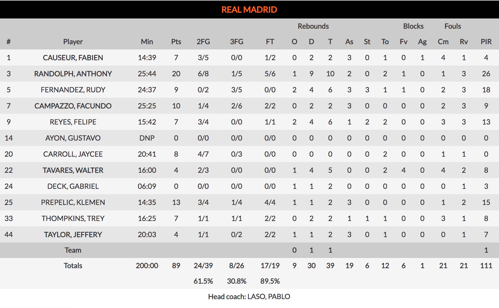 Pero todavía hubo tiempo para un último arreón por parte de Herbalife Gran Canaria. Un par de buenas defensar permitió sumar fácil al contraataque y amenazar con una última ofensiva (77-70, min. 37). Pero no fue más que un espejismo, porque el Real Madrid se dio el festín final en esos últimos minutos, con un Anthony Randolph que redondeó un partido bestial (20 puntos y 10 rebotes) y acabó llevándose la victoria de forma cómoda (89-76).
