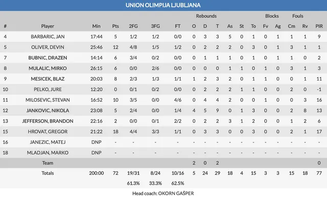 Repitiendo errores. Como en el segundo cuarto, los taronja se las ingeniaron para dilapidar su ventaja a base de errores en ataque y una defensa no del todo intensa. Esa defensa del Valencia Basket se tradujo en una remontada del Olimpia Ljubljana que por primera vez en el partido logró ponerse por delante en el marcador gracias a un tiro libre del pívot Jankovic. Los taronja llegaron al minuto final por debajo en el marcador pero un triple de Antoine Diot y un tiro libre del galo certificaron la victoria del Valencia Basket pese a que el equipo esloveno anotó un triple para empatar, eso sí, fuera de tiempo por lo que los taronja certificaron su primera victoria en Eslovenia en la que era su tercera visita a la capital por un ajustado 72-75.