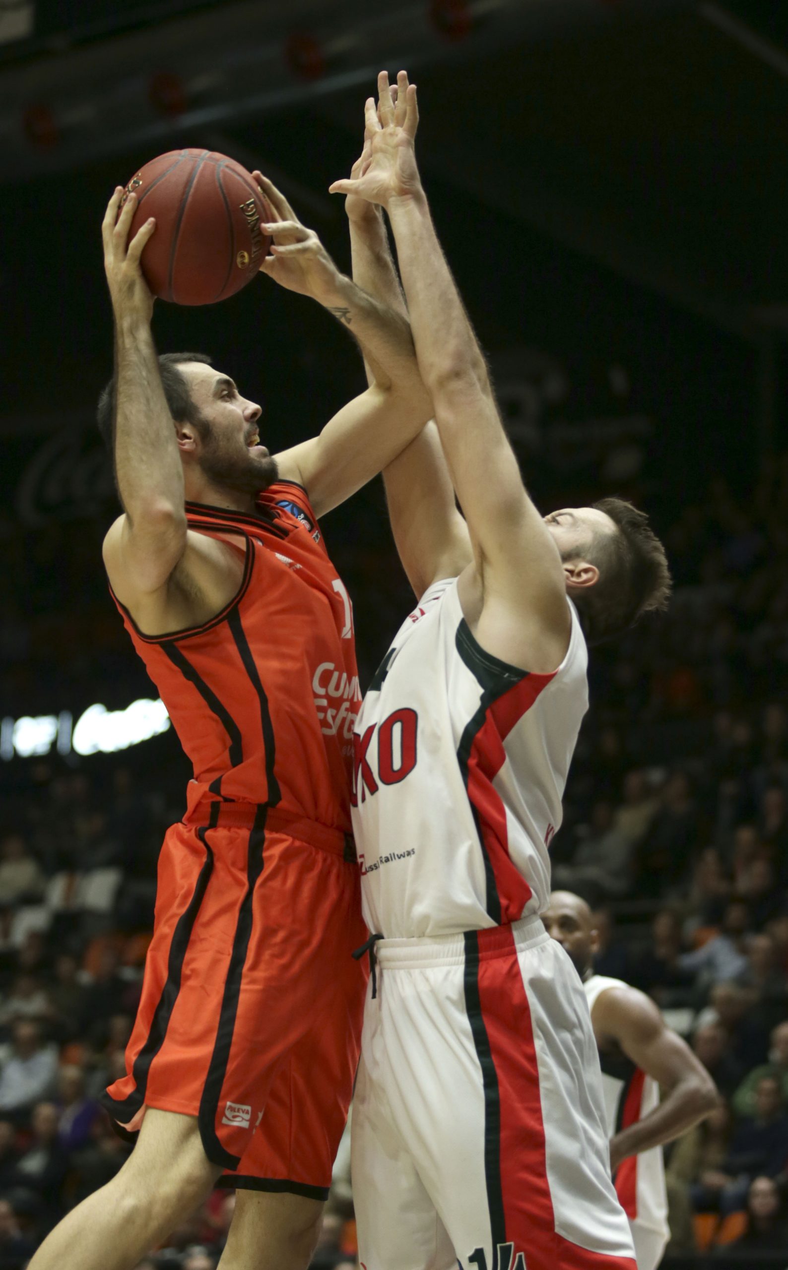 2. Castigando a Vogioukas: Sasa Obradovic sabía que en la pintura podía sufrir contra Kravtsov, Dubljevic y Oriola e intentó rotar al máximo a sus hombres interiores cambiando continuamente a Vogioukas, Zubkov y Ivlev. Pese al intento, los tres pívots del Valencia Basket aprovecharon la poca intensidad defensiva del griego para castigarlo en la pintura. Bojan logró 9 puntos y además le sacó una técnica a Vogioukas mientras que Kravtsov anuló al griego en defensa. Rafa Martínez también cuajó un buen segundo cuarto anotando 7 puntos gracias a los triples y a aprovechar la técnica de Vogioukas y de Mardy Collins. Las dos técnicas sumadas a una antideportiva señalada a Ivlev permitieron a los de Pedro Martínez abrir brecha (30-23) no obstante, la dureza defensiva del Lokomotiv Kuban lo devolvió al partido dejando la diferencia en cuatro puntos al descanso (39-35).