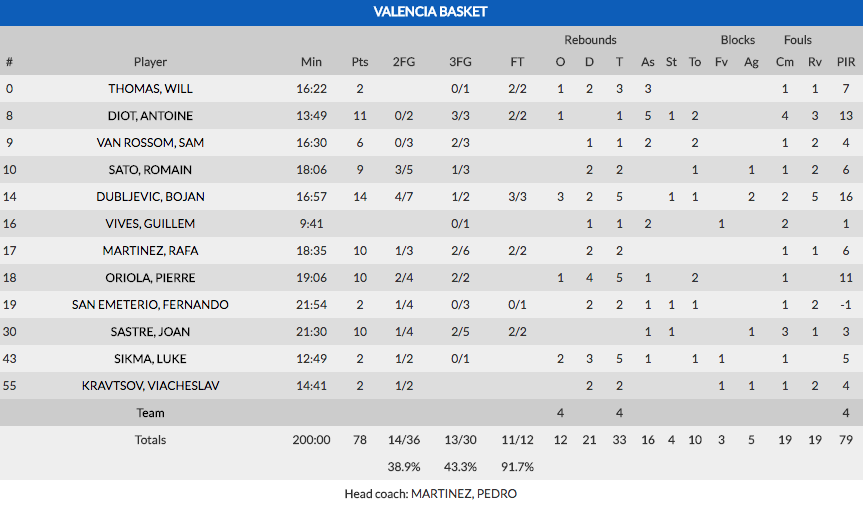 4. Siempre Diot: El base francés llegaba al último cuarto con 0 puntos y 3 faltas personales. El Lokomotiv Kuban ampliaba la ventaja hasta el 56-67. 11 puntos arriba. Fue entonces cuando Diot desaparecido hasta el momento, entró en éxtasis. El galo comandó un parcial de 19-6 en cuatro minutos que puso al Valencia Basket dos puntos arriba a falta de un minuto. La remontada parecía torcerse con una pérdida a falta de 10 segundos que aprovechaba Mardy Collins para dejar el marcador en 75-77 con 5.6 segundos por jugar. Fue entonces cuando sucedió el milagro. Sin tiempos muertos disponibles Antoine Diot se recorrió la pista entera, perdiendo y recuperando el balón en el camino y anotando un triple frontal ante la oposición de dos rivales. La heroicidad del francés que acabaría con 11 puntos cuando empezaba el cuarto en 0 valió para que el Valencia Basket sume una victoria más y curiosamente logre la primera victoria en la Fonteta ante el Lokomotiv Kuban, equipo que se había impuesto en sus dos anteriores visitas a Valencia.