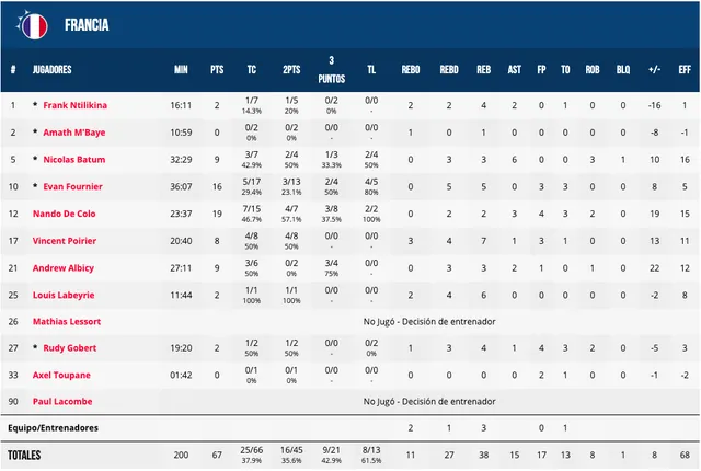 Apareció Batum. El jugador actual de Francia con más temporadas a buen nivel en la NBA llevaba un campeonato muy gris, pero hoy se resarció. Su tercer cuarto fue para enmarcar, dominando todos los aspectos del juego. Antotó 7 puntos en ese período, provocó dos faltas en ataque, asistió a sus compañeros, reboteó y robó, además de poner un espectacular tapón a Baynes debajo del aro. Inició la remontada y en cuanto De Colo (19 puntos) se sumó a la fiesta con una buena aportación de Poirier, los galos remontaron hasta el 42-46 que dejaba un partido nuevo para el período decisivo.