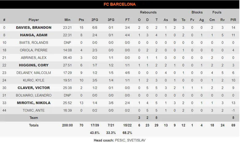 No hay defensa sin Brandon, no hay Davies sin ataque: Se vio desde el principio del partido como Brandon Davies es vital en la pintura azulgrana, sobre todo en defensa. Sus 11 puntos en el primer cuarto no taparon su papel como faro atrás que sí desnudó la fragilidad de Tomic cuando entró en cancha. Se le cayó Gudaitis encima de la pierna y se tuvo que marchar lesionado, pero hasta el momento estaba siendo la referencia tras el gris partido de Mirotic. Acabaría con 15 puntos y 2 robos.