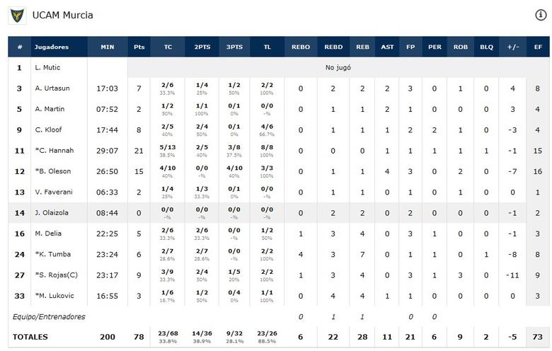 Tercer partido de la fase de grupos de la BCL, donde UCAM Murcia llegaba invicto y con el noble propósito de lograr una nueva victoria para afianzar su posición en la cabeza del grupo A. En cambio, el Dinamo Sassari no había estrenado su casillero de victorias. Los visitantes se han impuesto en un partido igualado y el que se ha decidido en el último cuarto con un parcial de 15-25. Con este resultado se colocan con 2 victorias y 1 derrota; que unido a los resultados de Mónaco y Pinar Karsiyaka deja al UCAM Murcia a un partido de franceses y rusos.