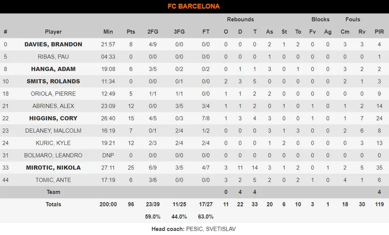 El Barça se apunta una nueva victoria tras vencer a Maccabi Tel Aviv por 96-73 en un encuentro que estuvo más igualado de lo que se esperaba en los primeros 25 minutos. A partir del tercer cuarto y gracias a un parcial de 14-2 cosechado a partir de la defensa los azulgrana se impusieron en el marcador con comodidad ante unos israelís que se dejaron ir. Los locales continúan co-líderes con ocho victorias y dos derrotas por las seis de Maccabi.