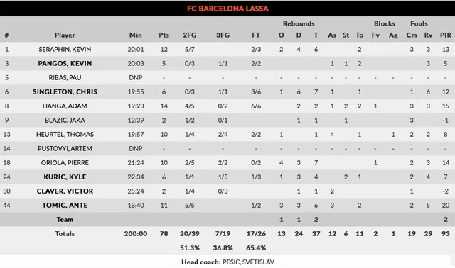 Dominio reboteador blaugrana: factor determinante desde el primer cuarto, con Tomic, Oriola y Seraphin abusando bajo aros. Zalgiris Kaunas se desesperó en la defensa al poste, viendo como sus hombres grandes se cargaban de faltas impotentes ante el dominio bajo aros blaugrana. Una ventaja reboteadora aún más importante ante el “pobre” día en el tiro exterior para los de Kaunas (8/26 en triples).