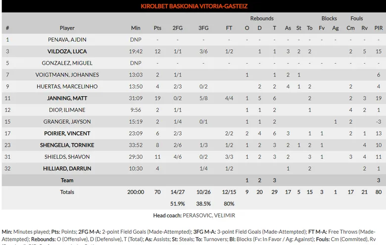 Kevin Pangos: El canadiense tras estar prácticamente desaparecido en la primera mitad, comenzó a tomar algo de responsabilidad en el tercer cuarto y terminó por rematar el partido en el último periodo. 16 puntos, 10 en el último cuarto.