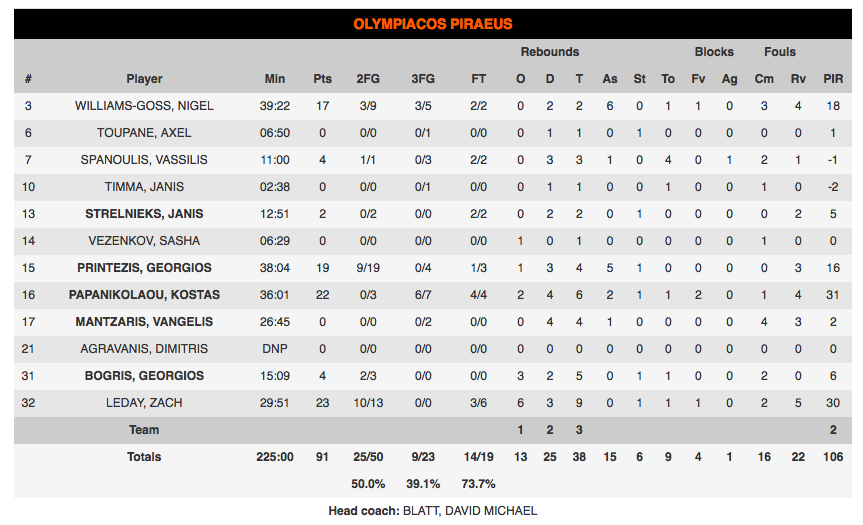 El Olympiacos aprovechó ese arreón para sentenciar en el overtime con sus tres hombres del partido, Papanikolaou, Printezis y Leday. 91-87 de los griegos para sumar la 11ª victoria. El Baskonia sigue sin poder ganar en Grecia a pesar de los grandes esfuerzos. Lo tuvieron muy muy cerca, pero se les escapó de las manos.