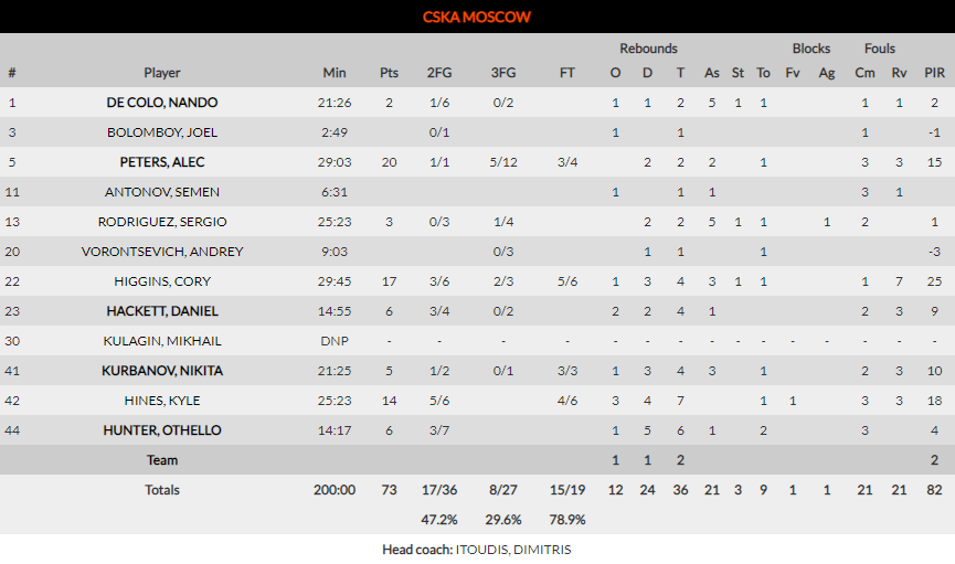 En general, se mantuvo la igualdad en el primer tiempo pese a los triples errados y los tiros libres no aprovechados por parte de Baskonia. Hubo dos momentos en los que CSKA se puso por delante gracias, en parte, a un acertado Alec Peters: uno fue solventado en un visto y no visto y culminó con una gran jugada de Granger y Poirier; el segundo costó más, pero de nuevo con Shengelia en pista, los vitorianos remaron y rematon para irse al descanso por delante (40-38).