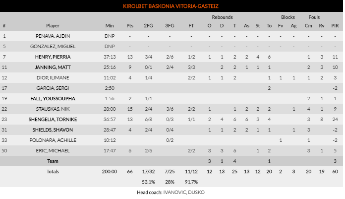 La conexión entre dos ex-ACB hacía estragos al conjunto visitante, que no podía parar de ninguna manera a un portento físico como Ponitka ni a un Colton Iverson que se convirtió en ‘Zar’ de los rebotes y canastas debajo de canasta. Tan solo Toko Shengelia y Nik Stauskas podían contrarrestar esta falta de ideas de la que padecía Baskonia.
