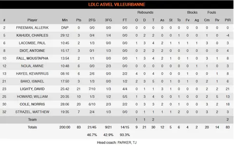 La profundidad en la plantilla es uno de los factores claves en Asvel-Villeurbanne. Nombres muy conocidos como Norris Cole, quien ganara dos anillos junto a Wade, LeBron y Bosh en los Heat, Antoine Diot, conocido por todos por su larga estancia en Valencia, o William Howard, destapado como un grandísimo especialista en el triple. Pese a ello, el técnico Parker no acaba de encontrar la fórmula para su quinteto. Vimos muchos problemas en la primera mitad para los franceses para anotar, más allá de las individualidades de los anteriormente mencionados. La entrada en el partido de la joven promesa de tan solo 18 años, Matthew Strazel, y los buenos minutos de Hayes, dieron aire a los locales que se vieron muy superados en toda la primera parte por Baskonia.