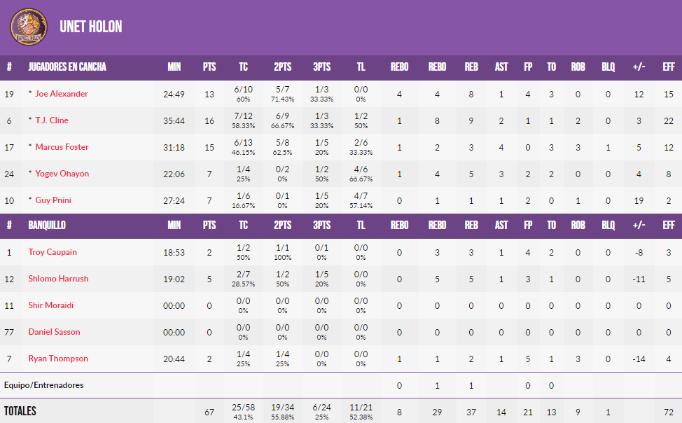 La dupla Cline-Foster: La eficacia del Hapoel en ataque estuvo sustentada por la pareja formada por T.J. Cline y Marcus Foster. El primer acabaría el partido con 16 puntos y 9 rebotes, consiguiendo un decente 58% en tiros de campo. Foster, por su parte, aportaría 15 puntos y 4 asistencias, anotando en momentos clave del partido y permitiendo a su equipo mantener la ventaja durante todo el partido.