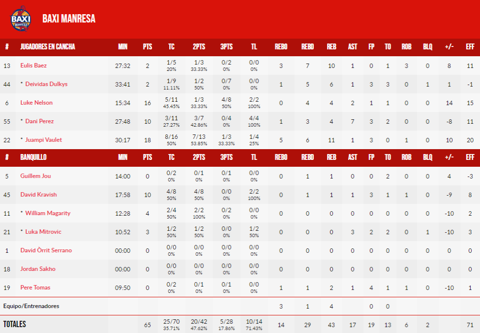 El inicio del último cuarto parecía cambiar la historia de este partido. Luke Nelson reducía la amplia ventaja con su segundo triple del partido, el único junto a Juampi Vaulet en anotar desde la línea de tres puntos para su equipo, poniendo a la grada en pie y dándole a sus compañeros ese ánimo que tanto necesitaban. Pese a todo, las buenas sensaciones se vieron frenadas por la consistencia en ataque del conjunto israelí, que supo contestar a cada arreón de los de Pedro Martínez. Cuando todo parecía visto para sentencia, Nelson sacó su mejor versión, anotando dos triples de manera consecutiva y poniendo a los suyos a cuatro puntos. La tensión se mascaba en el ambiente pero, finalmente, Manresa fue incapaz de darle a su público una remontada de proporciones épicas tras ir perdiendo por hasta 20 puntos. Tras el fallo sobre la bocina de Dani Pérez, el resultado final fue de 65-67.