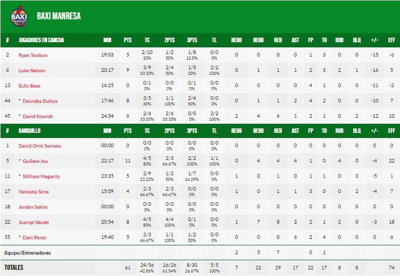 Pólvora mojada. La semana pasada los de Pedro Martínez nos deleitaron con un recital ofensivo anotando 121 puntos ante la peor defensa de la competición. No todos los días es fiesta y era obvio que se encontrarían con más dificultades en su visita a Lituania, pero también lo es que anotando 61 es muy difícil ganar fuera de casa en competición europea. El 27% en tiros de tres es una de las causas, pero más decisivo fue el hecho de que solo un Guillem Jou al alza alcanzó la decena (11), con anotadores como Toolson (5) o Kravish (6) muy por debajo de su aportación habitual.