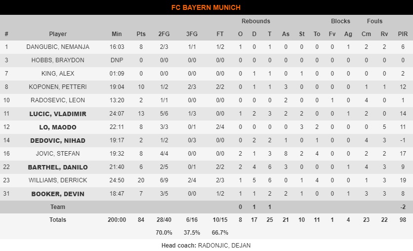 70% en T2 el Bayern Münich. El dato refleja el dominio interior con el que ha contado el conjunto bávaro, quien aprovechó la mala transición defensiva de Herbalife Gran Canaria para aumentar el ritmo de partido, y sacar partido de la ventaja física de su juego interior. Sin duda, factor determinante en la victoria del Bayern.