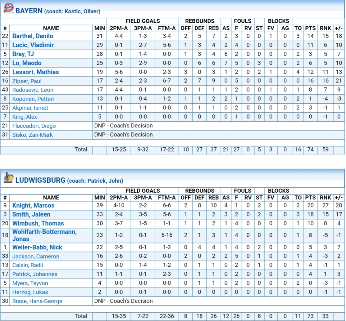 BAYERN múnich 74-73 MHP RIESEN LUDWIGSBURG