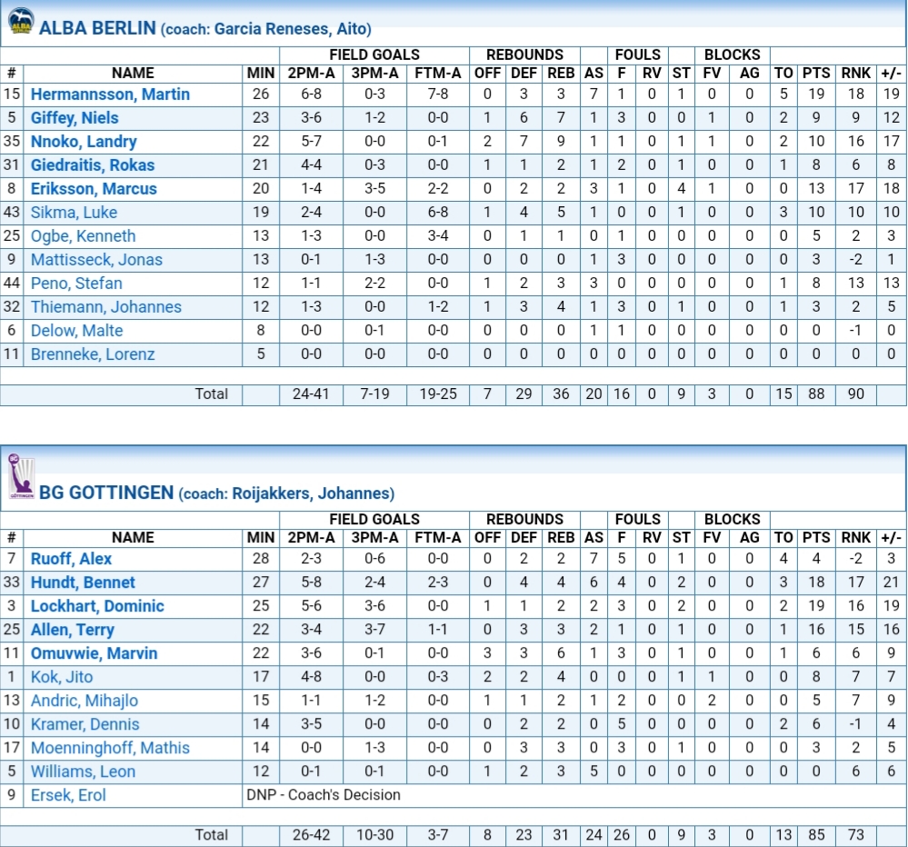 De ahí hasta el final, la diferencia no hizo más que crecer, y el entrenador esloveno aprovechó los últimos minutos para rotar a sus hombres con la mente puesta en las semifinales. Destacar también la actuación del ex ACB Andreas Obst, con 19 puntos, incluido un 5/7 en triples.
