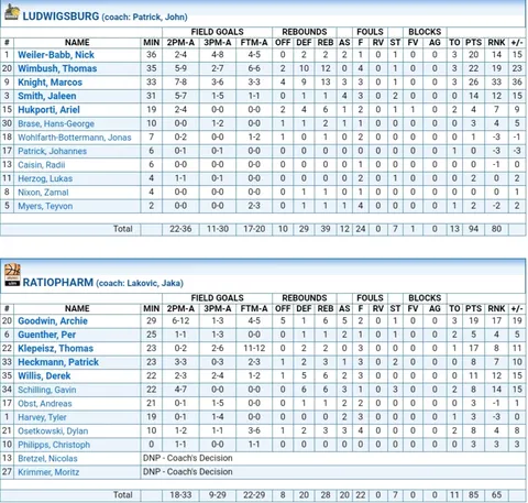 Nick Weiler-Babb (14,1 puntos, 5,3 rebotes, 1,6 asistencias). El ex jugador de las Universidades de Iowa y Arkansas es otro que no ha pasado desapercibido en su primera aventura europea, despertando el interés de equipos fuera de Alemania, y según el portal Sportando, habría llegado ya a un acuerdo para vestir la camiseta de la Virtus Bolonia para la próxima temporada. Es un líder silencioso, alterna las posiciones de 1 y 2, tiene calidad, potencia física y buena mano para el lanzamiento exterior, capaz de hacer un poco de todo en pista.