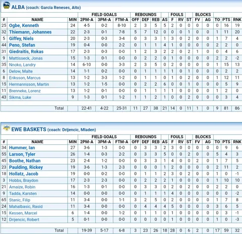 Poco después del descanso, Rasid Mahalbasic, único argumento Oldenburger en la ida junto a Boothe, daba por terminada su participación con su quinta falta personal, y ello allanó el camino al cuadro de Aíto. De ahí hasta el final, fue un paseo triunfal para el Alba, que aprovechó para dar descanso a sus hombres importantes (Giedraitis y Siva no fueron de la partida, Luke Sikma 9 minutos en pista, Eriksson 13…) de cara a la gran final que arrancará este viernes, y que se disputará, como el resto de eliminatorias, a doble partido.