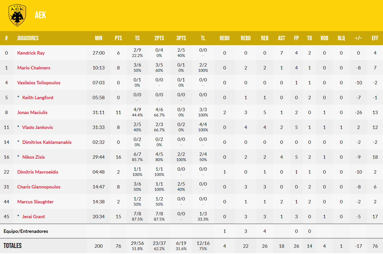 Jonas Maciulis fue el único de los griegos que trató de remontar el partido, acabando con 11 puntos y 5 rebotes y, por momentos, dando la impresión de ser el único de los suyos con ganas de pelear por la remontada. La llegada de Dragan Apic a San Pablo Burgos ha supuesto una nueva ventana de oportunidades ofensivas en la pintura mientras los burgaleses sólo tenían que preocuparse por controlar las faltas personales.