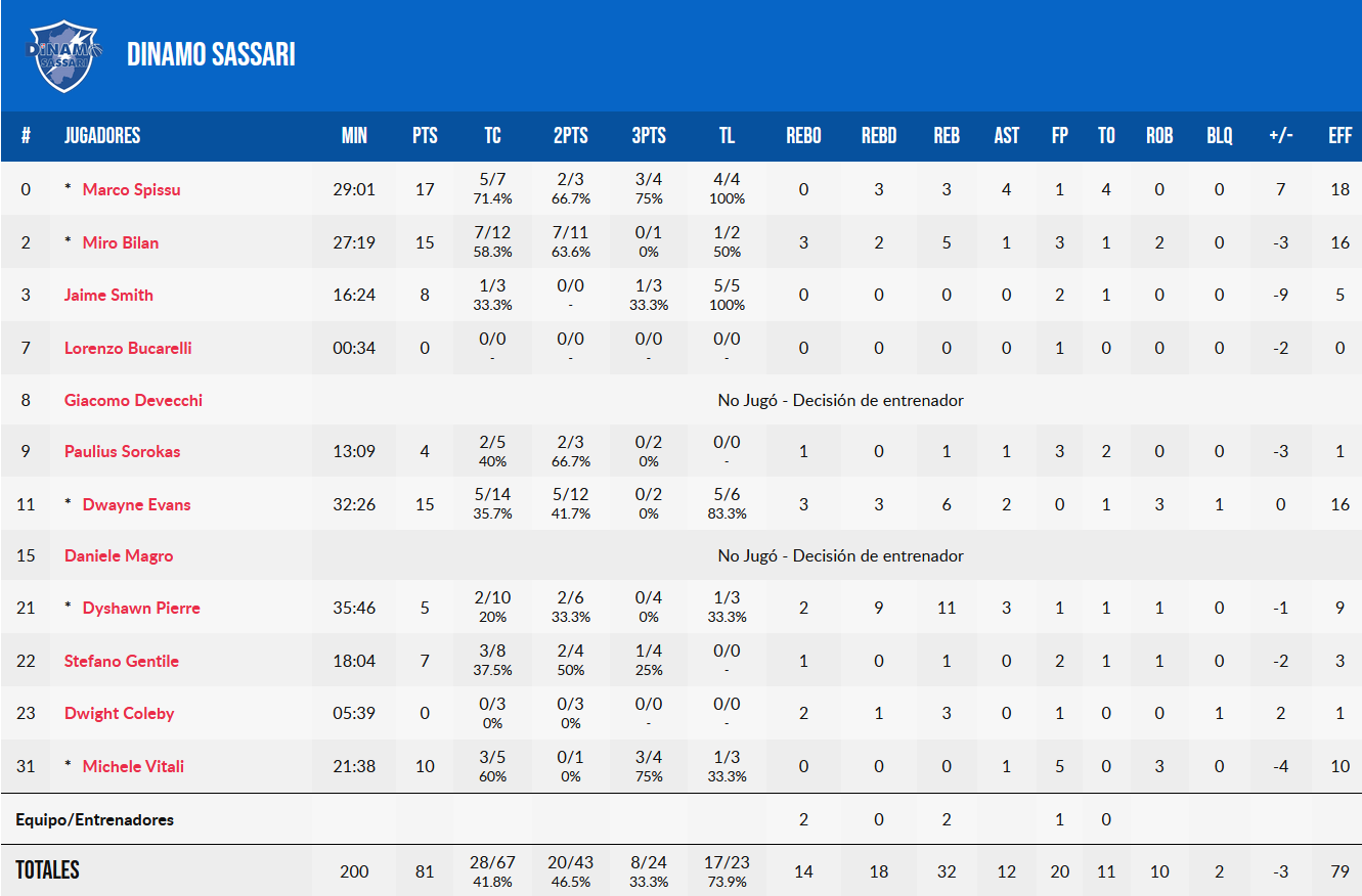 El partido comenzó de cara para los castellanos, especialmente gracias a su acierto desde el tiro exterior. Vitor Benite anotaba una y otra vez desde fuera (hasta 4 triples en el primer cuarto) y San Pablo Burgos conseguía unas sensaciones inmejorables sobre la pista, ante el desconcierto de un Dinamo Sassari que jugaba un gran baloncesto y, aún así, se veía por debajo en el marcador: 23-26 al final del primer cuarto.