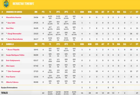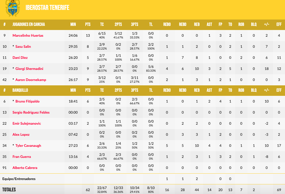 DOORNEKAMP DESATASCA EL PARTIDO: Una serie sin fallo en el tercer acto (3/3 desde el 6,75), tal y como estaba el choque, le ha venido al Iberostar Tenerife como oro en paño. El canadiense con pasaporte holandés llegaba tras una primera parte aciaga para él (0/6 en tiros de tres), como también lo ha sido para el resto del equipo. Estos triples han conseguido otorgar al conjunto aurinegro máximas de partido, de entre diez y doce puntos.