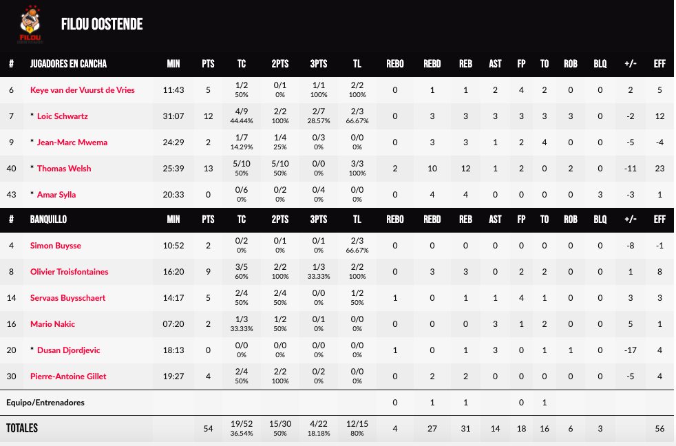 GRAN DESACIERTO EN AMBOS EQUIPOS: Tanto el Filou Oostende como el Iberostar Tenerife han estado muy erráticos de cara el aro en los primeros veinte minutos. No ha habido prácticamente fluidez para ninguno de los conjuntos en pista de ataque, estando por el contrario muy serios en pista defensiva. Tan sólo hay que ver el resultado al descanso: 30-30, marcador que podía haber sido incluso más bajo si no llega a ser por una reacción final del conjunto aurinegro.