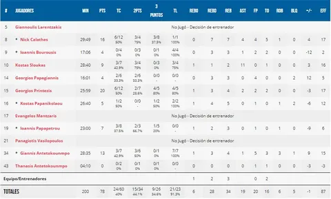 2. Antetokounmpo, neutralizado y Printezis, demasiado solo. La gran estrella helena se apagó muy pronto, en parte por el problema con las faltas. La defensa se cerró a la perfección cada vez que entró y lo máximo que pudo hacer fue sacar faltas (7/7 en tiros libres) y ayudar en el aspecto reboteador. Una de las últimas jugadas, la que les podía dar la victoria, fue para él, pero Caboclo lo defendió de tal manera que no pudo recibir el balón al lado del aro. Por su parte, Printezis fue el auténtico protagonista anotador en Grecia. Autor de 20 puntos, estuvo muy solo tras su excelsa primera mitad. Hubo destellos de Calathes y de Sloukas, pero fueron insuficientes.