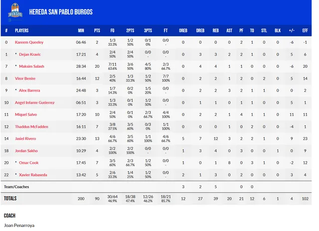 Rivero, por su parte, aportó la intensidad que le faltó a Dejan Kravic para anotar 13 puntos, recoger 12 rebotes y repartir 3 asistencias, con muchos minutos de pívot en compañía de Max Salash, que aprovechaba sus espacios. El cubano terminó siendo clave para la victoria burgalesa y su duelo con Perkins resultó lo más interesante del partido.