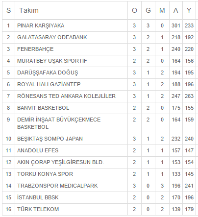 El Pinar Karsiyaka, vigente campeón de liga, está demostrando haber comenzando la temporada de forma dulce. Los jugadores de Ufuk Sarica están en una forma extraordinaria y están hilando un baloncesto de muchos quilates. En su visita al Istanbul BB, vencieron por un aplastante 80-105, con siete jugadores firmando dobles dígitos en anotación. Destacó por encima de todos el base Joe Ragland, que repartió 12 asistencias, además de anotar 18 tantos. En los locales, Damir Markota sumó 22 puntos y 4 rebotes. Con las derrotas de Anadolu Efes y Fenerbahce, Pinar Karsiyaka se coloca como líder único de la clasificación.