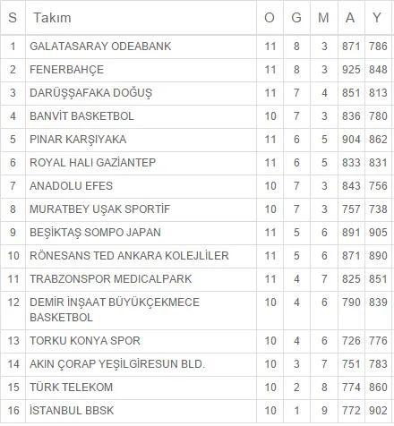 El Usak mantiene el tipo gracias a su victoria ante el Istanbul BB (90-73). El triplete norteamericano local funcionó a toda máquina, acumulando un 80% de lo producido por el Usak: Giordan Watson (16 puntos y 10 asistencias), Paul Harris (18 puntos y 9 rebotes) y Andre Harris (22 puntos y 8 rebotes).