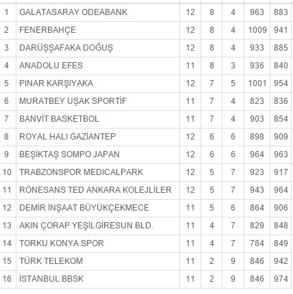 La liga turca no para durante las fechas navideñas. Dado que no es un país de tradición cristiana, incluso se disputan partidos en nochebuena. Y no cualquier partido. Nada menos que el duelo entre lo gigantes del basket otomano: Anadolu Efes vs Fenerbahce. Tras la celebración de la jornada, Dogus, Galatasaray y Fenerbahce lideran la clasificación con un balance de 8-4, con Anadolu Efes con un partido menos y 8-3.
