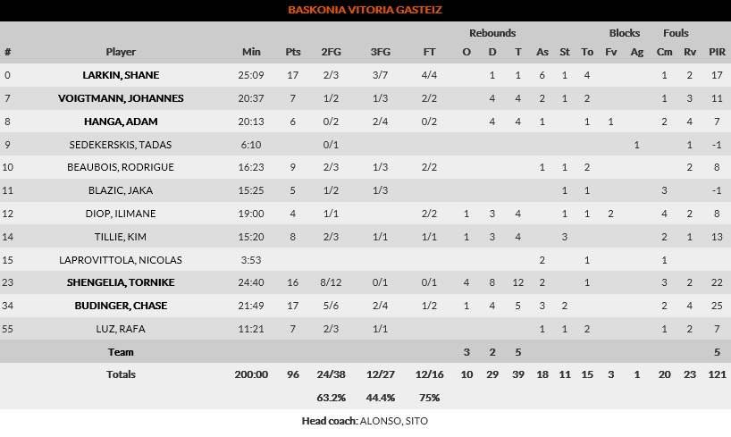 Finalmente, Baskonia demuestra su gran momento, tras las victorias ante Fenerbahçe y CSKA, y olvidando la derrota en Manresa de la Liga Endesa. Brose no levanta cabeza, aunque es verdad que no se juega mucho a nivel clasificatorio. No obstante, no es una imagen aceptable para una plantilla como la que posee, que tiene nivel Euroliga perfectamente.
