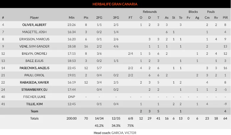 Tillie y Strawberry: Dos de los jugadores que llegaron a Gran Canaria para dar un salto de calidad al equipo, están siendo lastres en la mayoría de los partidos que han disputado. Sus porcentajes de tiro y su nivel defensivo son sus mayores defectos en este curso. El partido de hoy es solo un ejemplo más de dos jugadores que están ofreciendo un redimiento poco acorde con su nivel en temporadas anteriores y con su sueldo. Ninguno de los dos consiguió anotar (0 de 6 Strawberry y 0 de 5 Tillie) y, aunque se les ve con implicación dentro de la plantilla, no consiguen salir del largo mal momento.