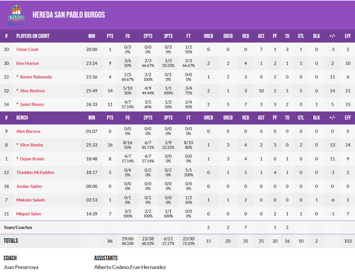 Si Hapoel Holon juega al lanzamiento exterior, la potencia física y la velocidad en el contraataque, la receta para los burgaleses estaba clara: cargar la zona, mantener bajo control el rebote defensivo y buscar generar más oportunidades de canasta con el ofensivo, especialmente ante el mal día en el triple de los azulones. Si bien en la primera mitad el rebote estuvo disputado, conforme el partido se fue desarrollando y apareció el cansancio, los de Peñarroya iban capturando cada vez más rechaces. Los ajustes en la defensa, comprando todos los cambios que proponía Hapoel Holon con 4 pequeños en cancha hizo que los tiros liberados se acabaran y comenzó la batalla por el rebote, en la que Jasiel Rivero, Ken Horton y Dejan Kravic tenían las de ganar.