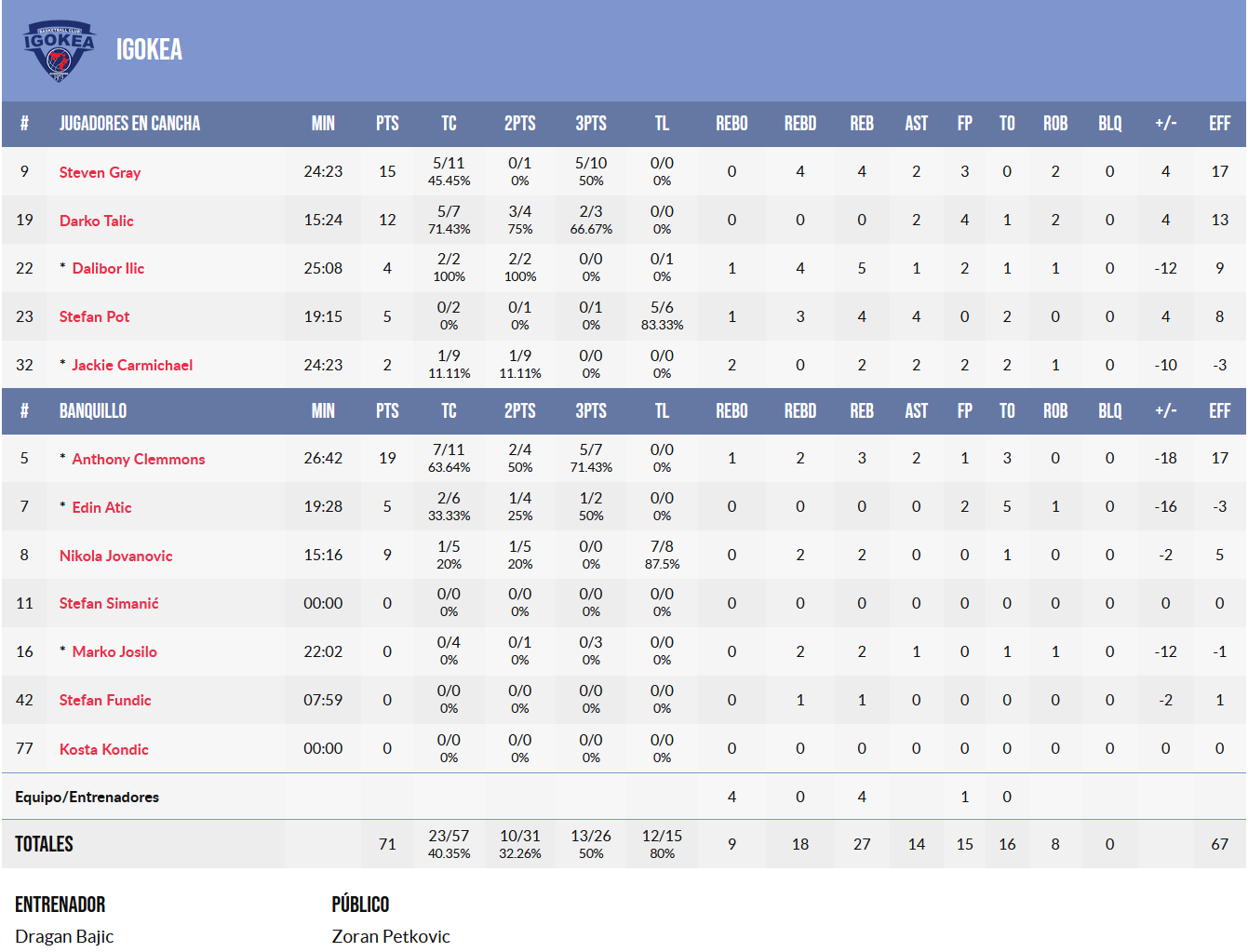 En ataque, Vítor Benite abría la pista mientras Rivero y Dejan Kravic hacían mucho daño por dentro, sacando a Carmichael del partido y adueñándose de la pintura por completo.