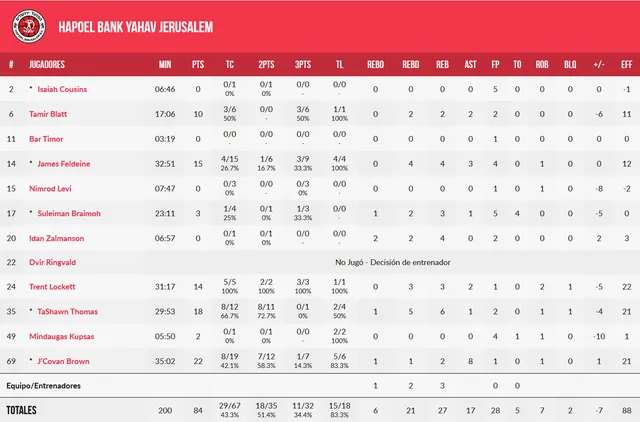 Los ajustes provocaron muchas faltas por los visitantes (2 jugadores expulsados y 2 más con 4 faltas), pero con una superioridad abismal en el rebote 51 a 27 a favor de los de Peñarroya y una excelente gestión de la ventaja por parte de los burgaleses desde la calma y la selección de tiro para cerrar el marcador 91-84 ante un favorito al título como Hapoel de Jerusalén.