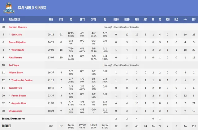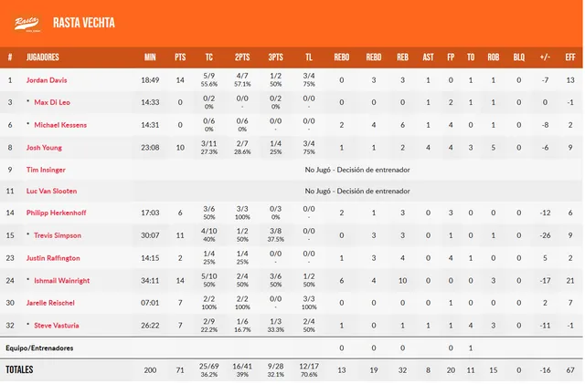 El ala-pívot americano fue un jugador absolutamente dominante con 21 puntos, 12 rebotes , 3 asistencias y 4 tapones para liderar a los suyos con 16 puntos y 6 rebotes en el segundo cuarto. El partido se tiñó de azul a partir de ese momento y la victoria de San Pablo Burgos no correría peligro, a pesar del arrojo del Rasta, que no se dio por vencido en ningún momento.