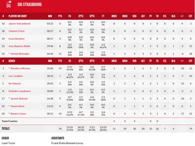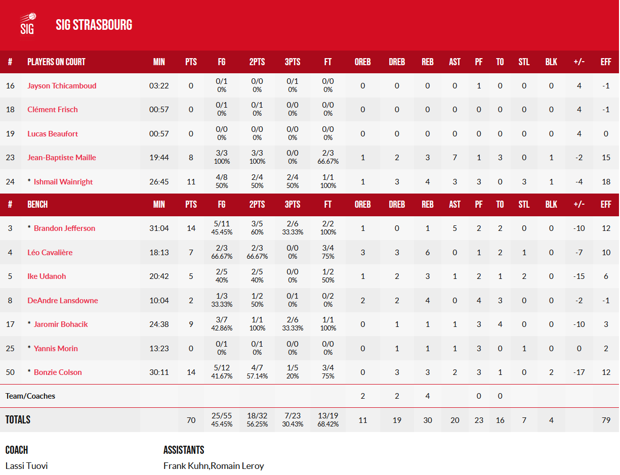 Decir que la defensa sobre Bonzie Colson fue buena cuando te anota 14 puntos puede parecer una locura. Pero lo cierto es que el MVP de la Basketball Champions League estuvo aislado durante todo el partido y muy bien defendido. Únicamente repartió 2 asistencias y con él los franceses tuvieron un -17 en pista, fruto de su escasa aporatción defensiva y de que forzó demasiados tiros: hasta 19 veces trató de anotar el norteamericano con 5/12 en T2, un buen 4/7 en triples… pero sólo un lanzamiento anotado sobre 5 tiros libres anotados. Sacar del partido a la estrella rival fue una clave acentuada por los problemas físicos de Brandon Jefferson y las malas decisiones de Wainright al final del encuentro.