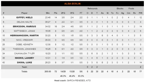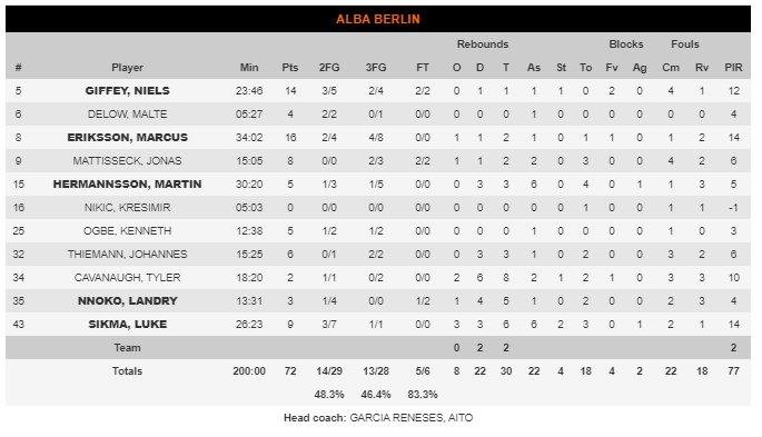 En frente; el siempre comabtivo Alba de Berlín. El conjunto alemán, pese a tener tan solo 9 victorias, ha cuajado una gran Euroliga; siendo el cuarto equipo más anotador, uno de los que mejor juega y un equipo al que nadie ha conseguido ganar fácil. El baloncesto ha sido injusto con el conjunto germano, proporcionándoles seguramente menos victorias de las merecidas, y desde el principio han demostrado esas sensaciones en el Buesa Arena.