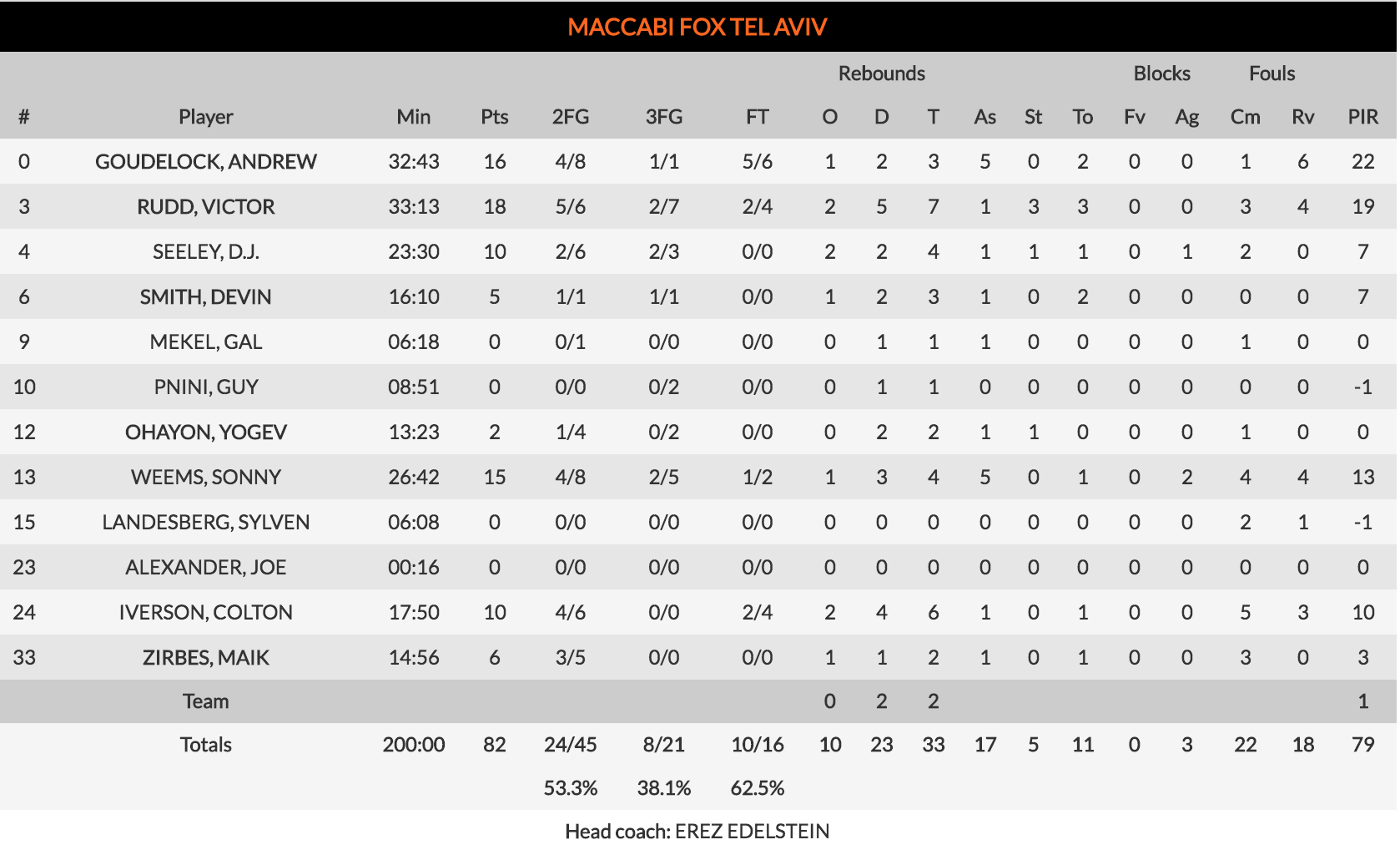Devin Smith, el mejor de los suyos en el arranque, anotaba un triple que era contestado con un 0-6 de los visitantes con Ayón en estado de gracia con 8 puntos sin oposición (9-18). Fue el exbaskonista Colton Iverson quien rompía el parcial, pero los macabeos no encontraban el acierto para contrarrestar a las torres madridistas, que mantenían la ventaja al final del primer cuarto (16-20).