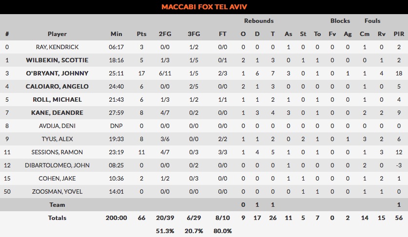Debut “chupón” de Ramon Sessions: el último fichaje del conjunto israelí estaba llamado a ser el director de juego que diera cordura a un equipo perdido en el juego táctico. En su lugar, Sessions optó por emplear la técnica de Juan Palomo (“yo me lo guiso, yo me lo como”) lanzando a canasta en todas las ocasiones que pudo.