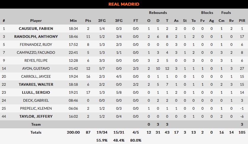 Neven Spahija, bien por las circunstancias como la lesión de Tarik Black o bien por decisión táctica, salió con una pareja interior formada por Caiolaro y O’Bryant, que comenzaron tirando de fuera para sacar a Walter Tavares de la zona. De inicio le funcionó con un O’Bryant acertado que metió 7 de los primeros 11 puntos de su equipo para llevar la ventaja en el marcador (11-7). Pero Tavares le devolvió la moneda con dos mates fáciles. En cuanto O’Bryant comenzó a fallar y lo sentaron, el ataque de Maccabi prácticamente desapareció. Los blancos se pusieron por delante gracias a un dos más uno de Ayón y un triple de Randolph para cerrar el cuarto con 15 a 18.O’Bryant volvió a aparecer al inicio del segundo cuarto, pero el actual campeón de Europa ya comenzaba a coger velocidad de crucero. Y entonces Jaycee Carroll decidió que había que acabar por la vía rápida. 14 puntos consecutivos mientras los israelís no eran capaces de anotar. Parcial de 8 a23 en el segundo cuarto y partido prácticamente resuelto.