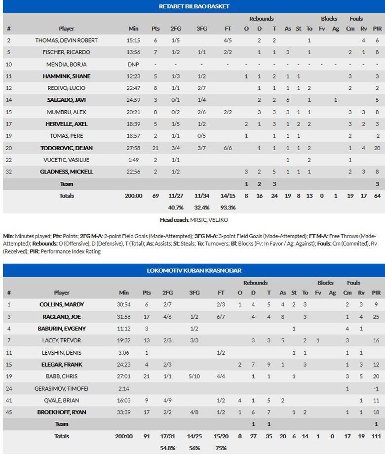 El trabajo colectivo: RETAbet Bilbao Basket se enfrentaba ante el favorito a ganar la segunda competición europea, que llegaba invicto a Miribilla con los Hombres de Negro ya eliminado de la competición. Y sin embargo, su trabajo hasta el último periodo fue notable, trabajando bien a nivel defensivo y mejorando detalles de su ataque, todos los hombres que Veljko Mrsic puso sobre el parquet anotaron.