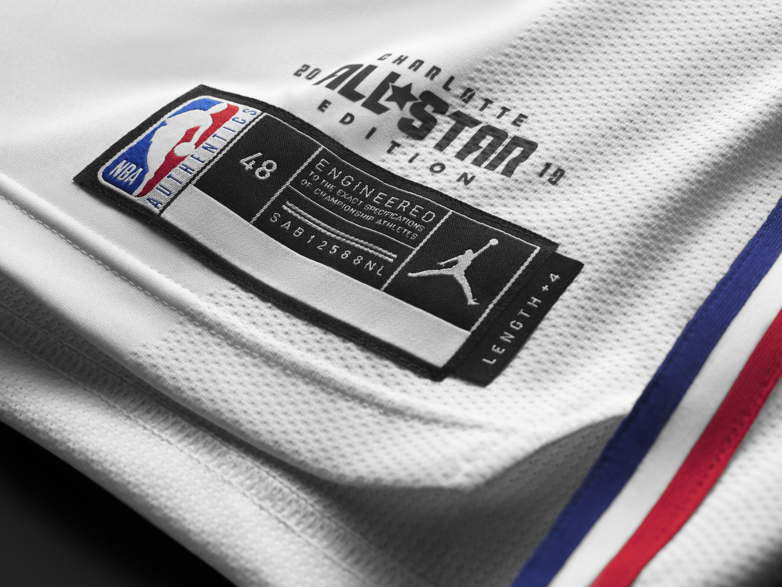 Los uniformes repiten los colores de la pasada edición, así que un equipo irá de blanco y el otro de negro, aunque cada jugador llevará una equipación personalizada con el logo de su equipo. Se han incluido algunas notas de color en los refuerzos de las mangas y el cuello, y detalles que homenajéan al equipo anfitrión del All Star y a la ciudad de Charlotte.