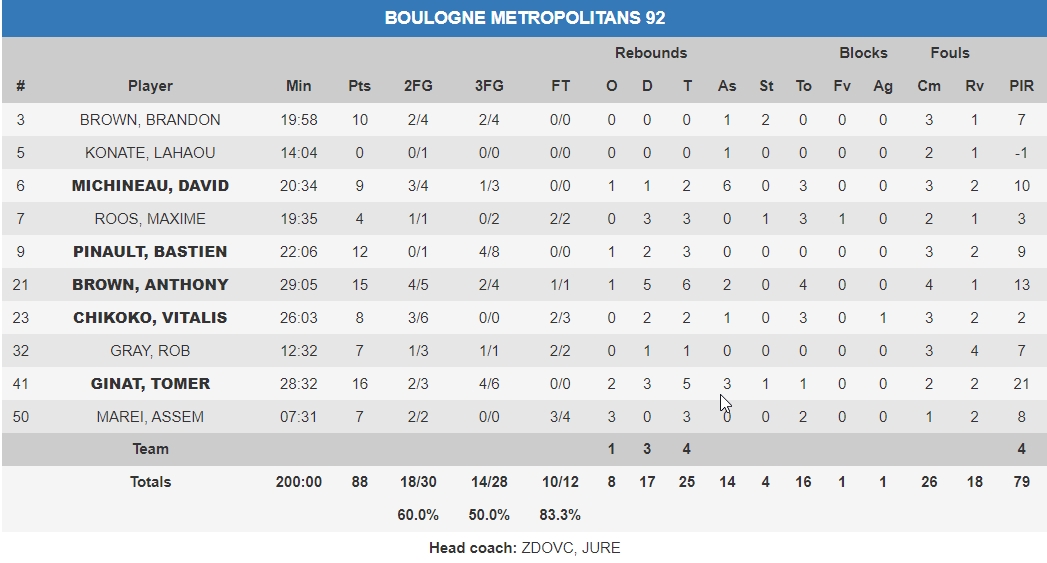 Sorprendente fue el acierto de ambos equipos desde la línea de 6’75 durante todo el partido. Unicaja llegó a estar al inicio en 6/7, lo que le permitió abrir brecha en el marcador aprovechando que la defensa gala fue cualquier cosa menos intensa en el primer tiempo. Tampoco les fue mal a los de Jure Zdovc desde la misma distancia. Ambos equipos estaban por encima del 50% al descanso: 7/11 (63%) Unicaja, por 7/13 (54%) Boulogne Metropolitans 92. Al final del partido, 42% para Unicaja y 50% para los visitantes.