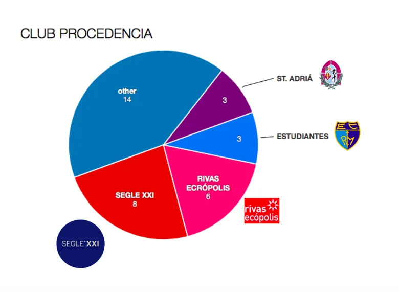 Si analizamos el último club español al que han pertenecido antes de embarcarse esta gran aventura al otro lado del Océano Atlántico, destacan dos canteras por encima de todas y con mucha diferencia: el equipo con más representación es el Segle XXI seguido de muy cerca por Estudiantes y Sant Adriá: