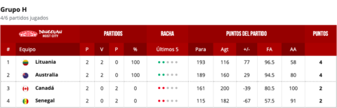 Un grupo muy cerrado, tan solo queda establecer la clasificación. Lituania y Australia lucharán por pasar de forma invicta a la siguiente fase. Canadá o Senegal buscarán su primera victoria para ir sumando de cara a la clasificación al preolímpico.