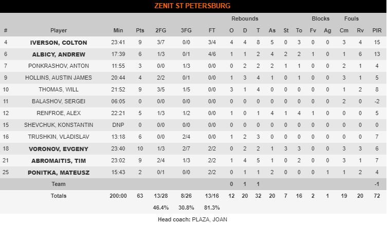 El mejicano no pudo disputar el partido y su equipo lo extrañó cada vez que tuvo que atacar. A pesar de tener diversos jugadores que pueden aportar en ese aspecto, él es el principal responsable de sumar en ataque y sin él su equipo se vio cojo. Solo Voronov pudo llegar a los dos dígitos en anotación, con 10 puntos.