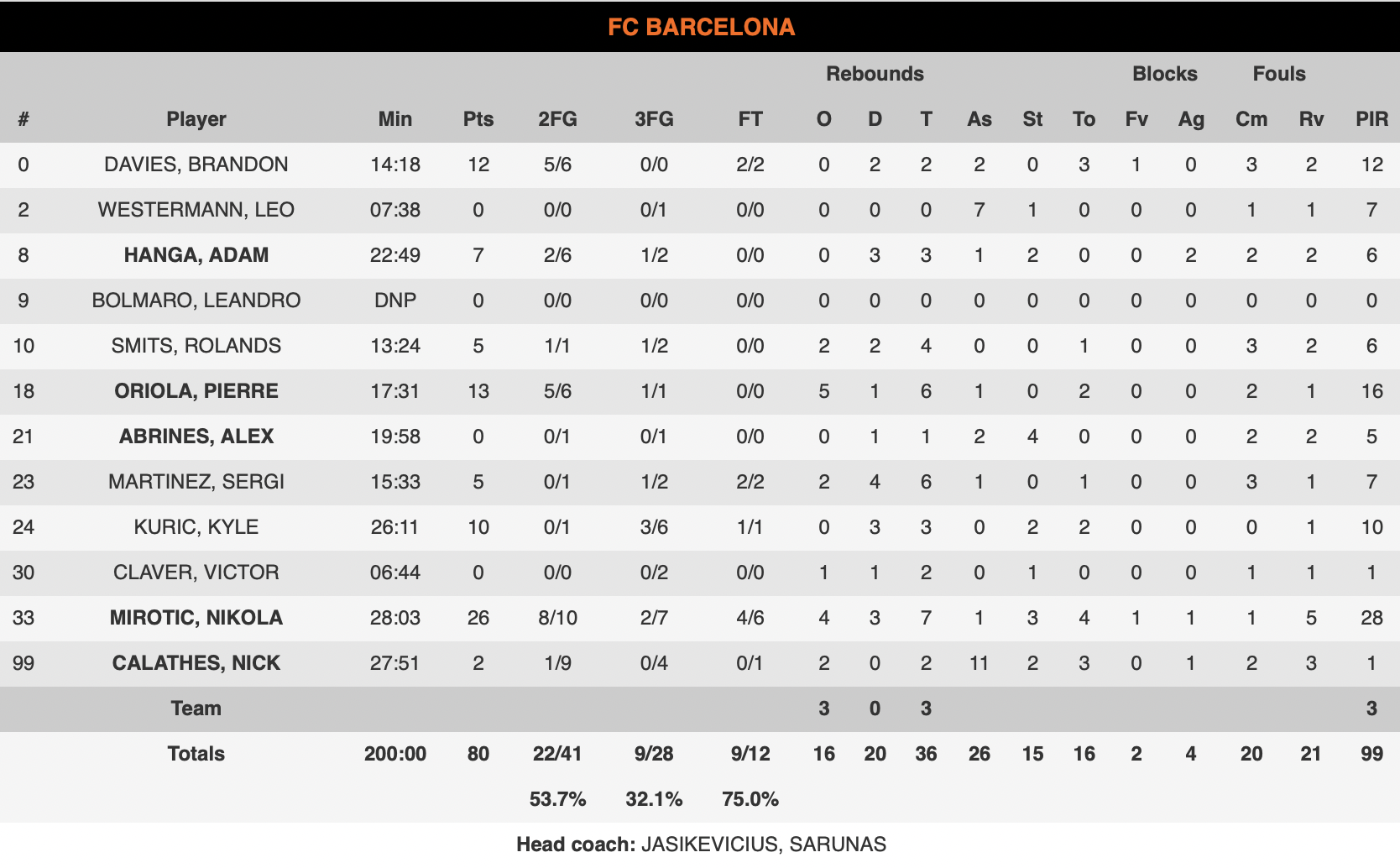Con la ausencia de Cory Higgins, el Barça evidenció problemas en la generación de juego que con él en pista se maquillaban por completo. Las soluciones que aportaba él, ahora debían aportarlas otros, y ante ello tomaron la posta los dos jugadores que, por rango, debían hacerlo. Calathes no hizo más que noches anteriores, pero tampoco menos. Su dirección de juego -junto a un Westermann muy lúcido- volvió a ser sublime, convirtiendo en peligro cada ventaja obtenida gracias a un mapeo completo de cada centímetro de la cancha. Lo acompañó Brandon Davies, tantas veces atizado por sus errores. Él disfruta de su capacidad creativa en el poste bajo y, aunque a veces salga cara y otras cruz, esa es una característica que debe valorarse en un jugador interior. Davies fue capaz de generarse sus propias situaciones de tiro gracias a un juego de pies tan sofisticado como estético, al que esta vez le sumó efectividad. Su autosuficiencia le otorgó al Barça la posibilidad de mantener una ventaja que tendía a la extinción. Si del amor al odio hay un paso, del error al Brandon hay dos.
