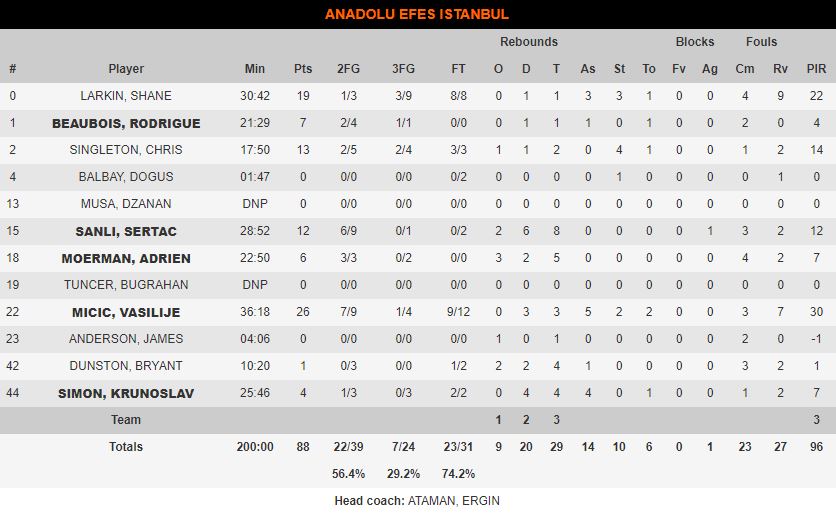 Medir la carrera de Larkin por su paso por la NBA sería quizás lo más injusto que se podría hacer con su trayectoria. El éxito jamás lo encontró de aquel lado del charco, pero su rendimiento en Europa ha sido superlativo durante años, justamente por un estilo NBA. Hace ya un par de años que flota sobre las canchas de los grandes del viejo continente, demostrando un arsenal pocas veces visto y una velocidad inalcanzable para cualquiera de los mortales que habitan en la Euroliga. El cambio de ritmo de Larkin es su punto diferencial, lo que lo desvincula del jugador promedio. Es, en definitiva, lo que le permite ejecutar a niveles inauditos. Las ventajas se le presentan a él como algo natural, porque no le requiere un esfuerzo excesivo encontrarlas. Eso usó para revolucionar el partido, contribuyendo a mantener el ritmo vertiginoso impuesto por los turcos en los primeros minutos. En Larkin se percibe un control del tiempo que no se presenta de forma habitual en Europa, una capacidad de amontonar ‘cadáveres’ a su paso que solo se le reconoce a tipos de otra liga.